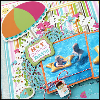I added some bling with my i-Rock on the umbrella, in the sun of my Hot Summer Day chipboard and a few sprinkled accents down in the water too. Don't you love those Cheery Lynn Designs doilies here? I thought they were awesome!